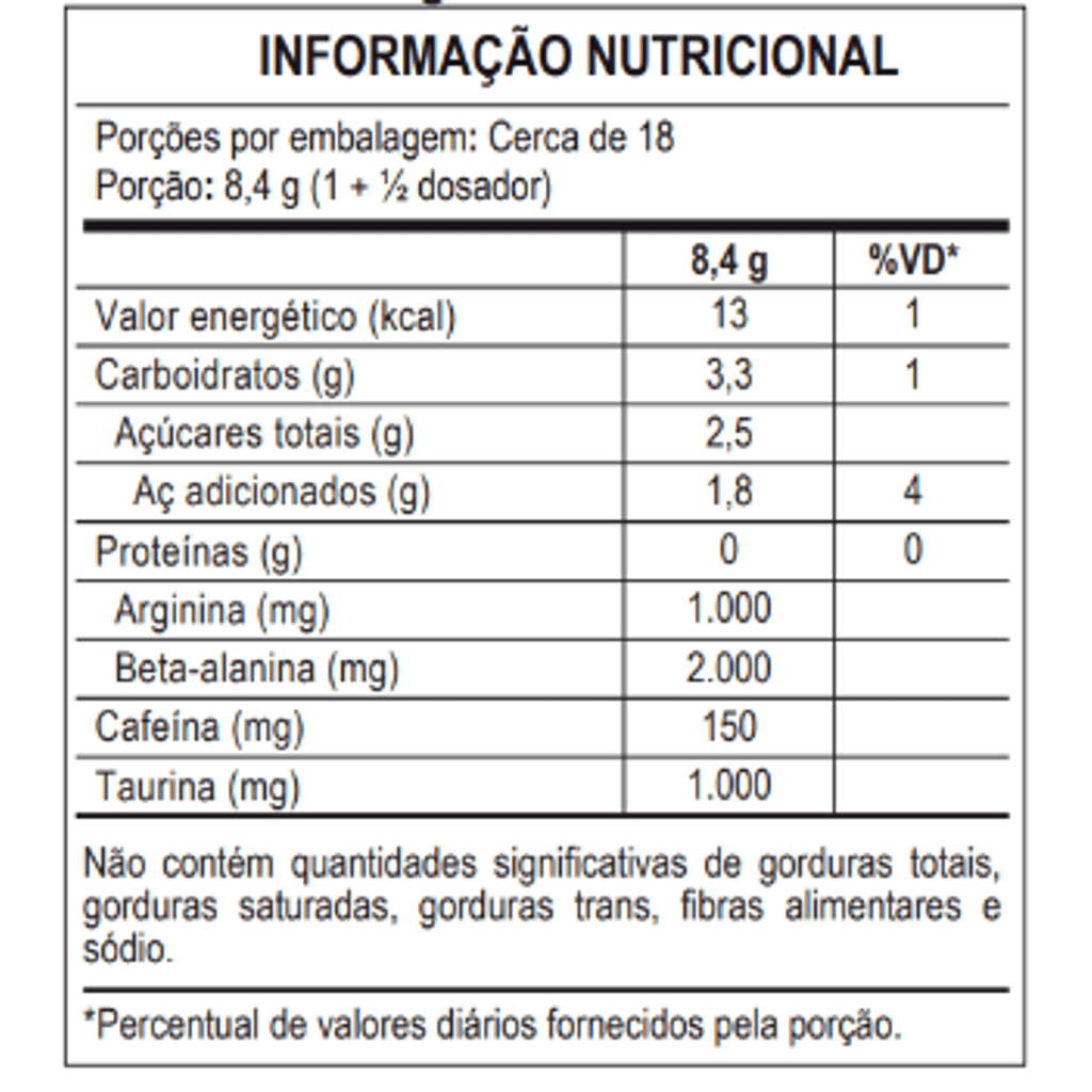 Taurina: A taurina é um composto associado ao aumento de desempenho, foco e concentração, além de aumento da sensibilidade à insulina e aumento da quebra de gordura.