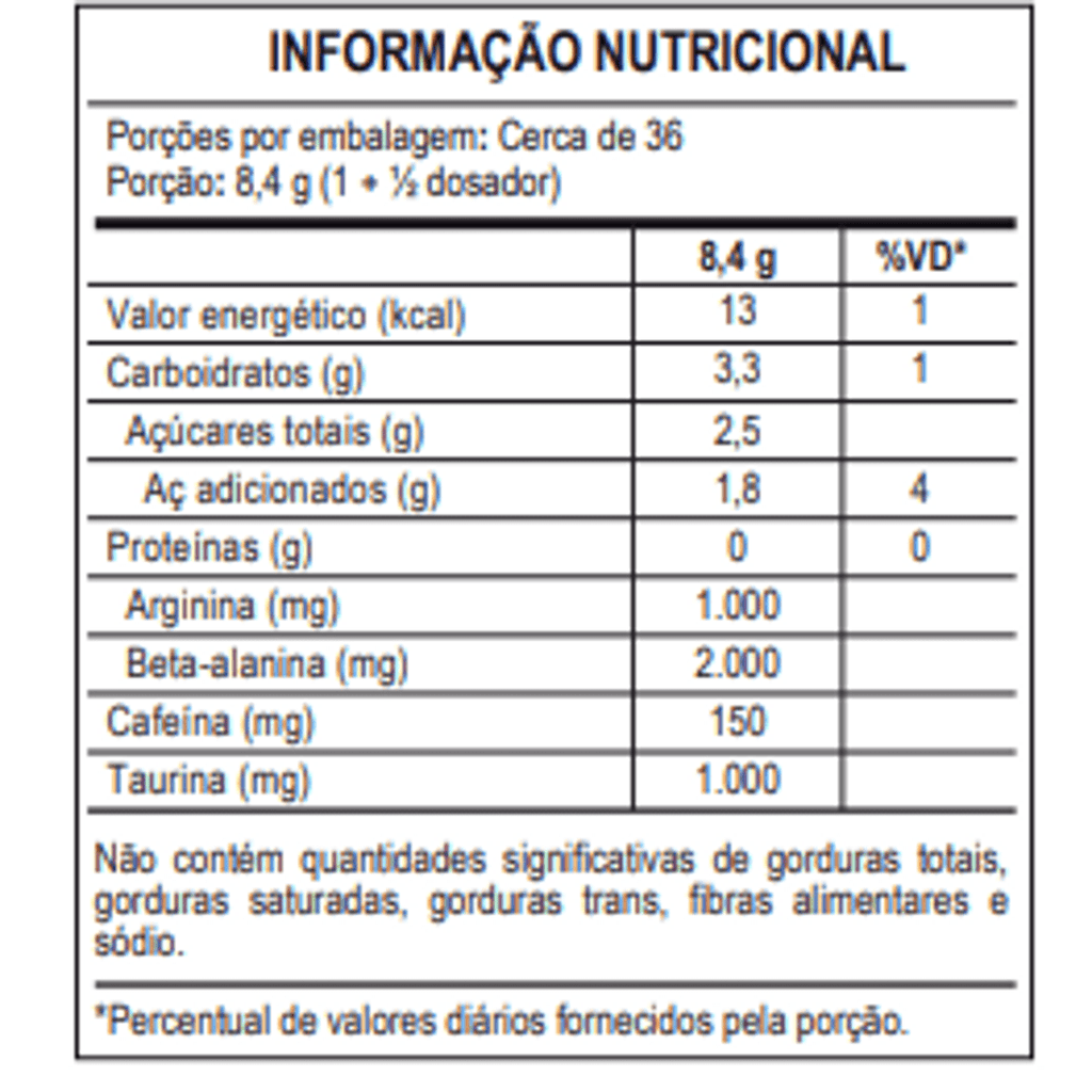 Taurina: A taurina é um composto associado ao aumento de desempenho, foco e concentração, além de aumento da sensibilidade à insulina e aumento da quebra de gordura.